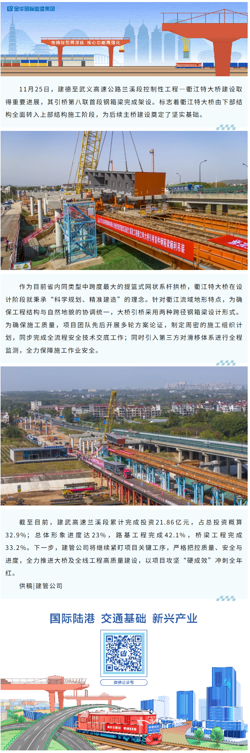 建武高速建設新進展!衢江特大橋首段鋼梁精準架設