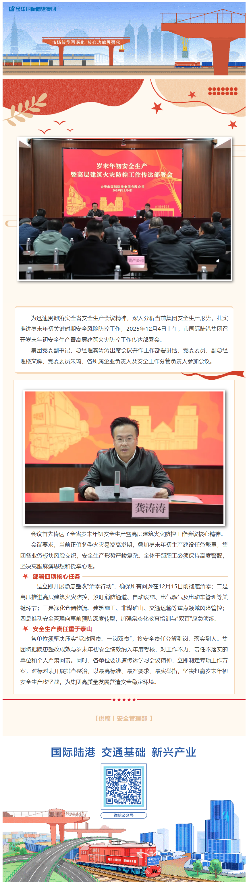 市國際陸港集團召開歲末年初安全生產暨高層建筑火災防控工作傳達部署會